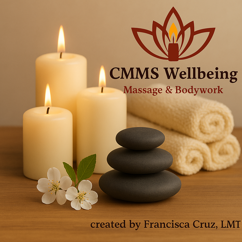 At CMMS Wellbeing Massage and Bodywork, our mission is to enhance overall health and relaxation through personalized massage and bodywork services, promoting holistic wellbeing and restoring balance for each client. Se habla espanol.